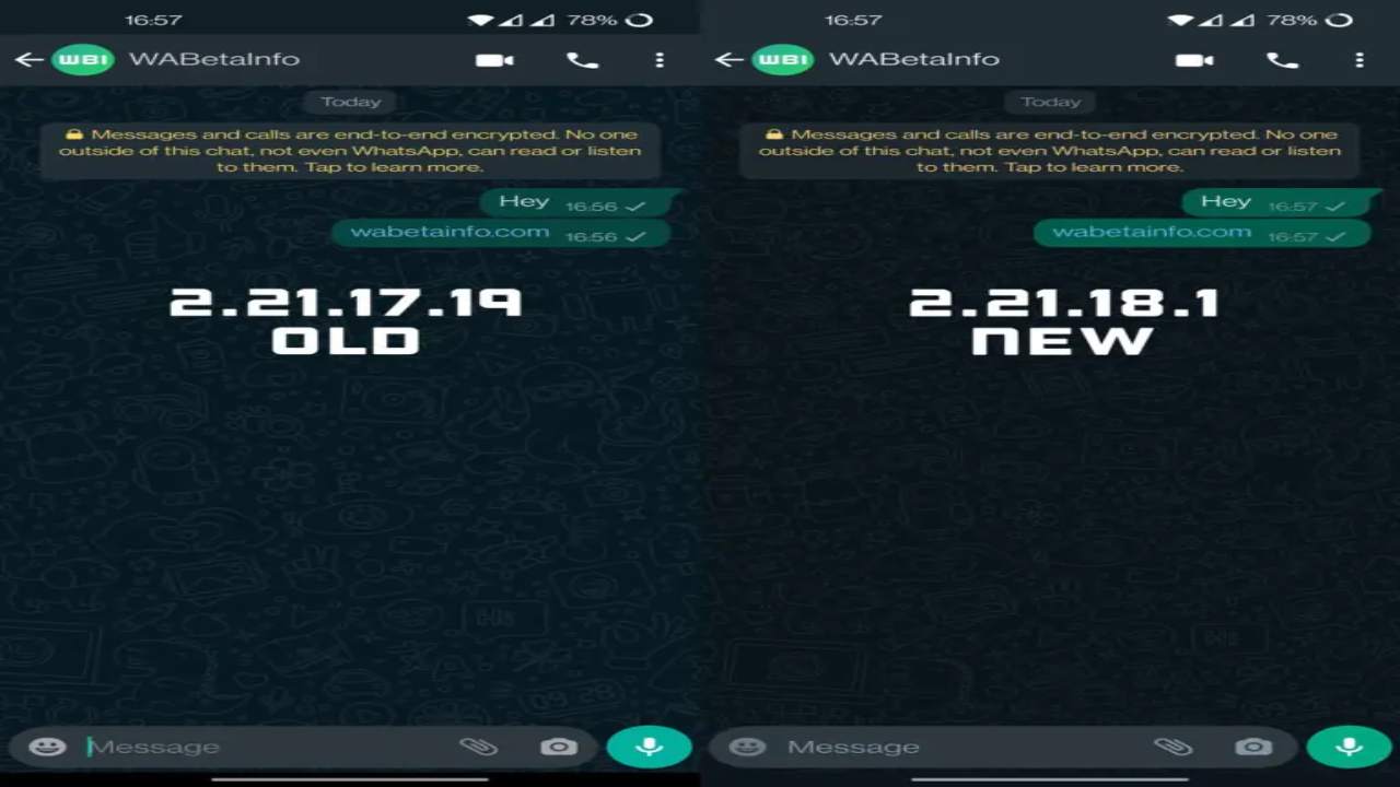 In questo caso non verranno introdotte novità funzionali, ma piccoli aggiornamenti estetici sia in modalità chiara che in modalità scura. Il cambiamento più evidente riguarda l’introduzione di nuovi schemi di colore che porteranno ad una schermata di chat più scura e ad una barra di navigazione leggermente più chiara. Più chiari saranno anche i fumetti in cui sono contenuti i messaggi inviati agli altri. Modifiche di colore verranno applicate anche alla barra di inserimento dello status e tornerà la data di creazione dei gruppi che era stata tolta nelle precedenti versioni dell’app.
